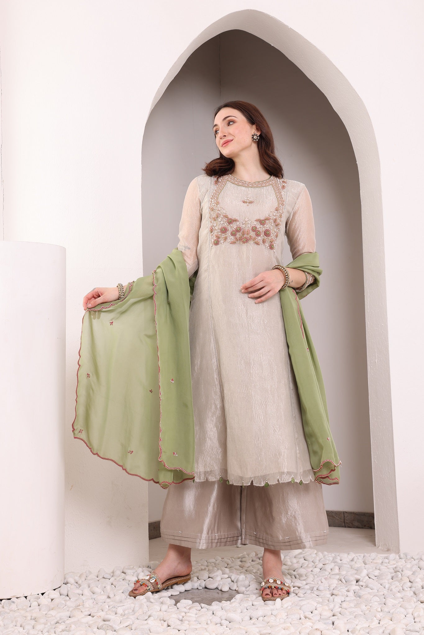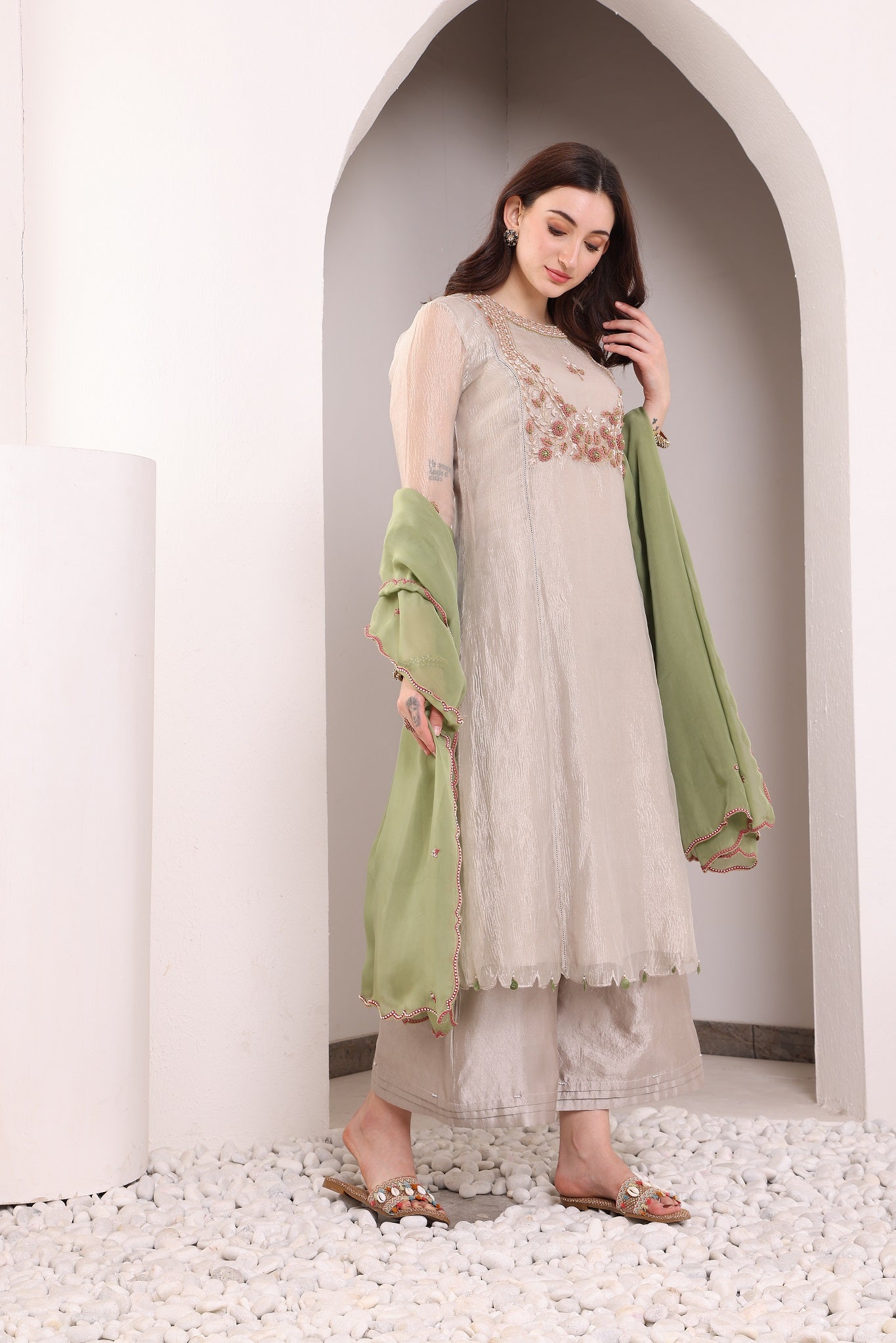 - COLOUR: GREY SUIT WITH Q LOTS AND DUPATTA