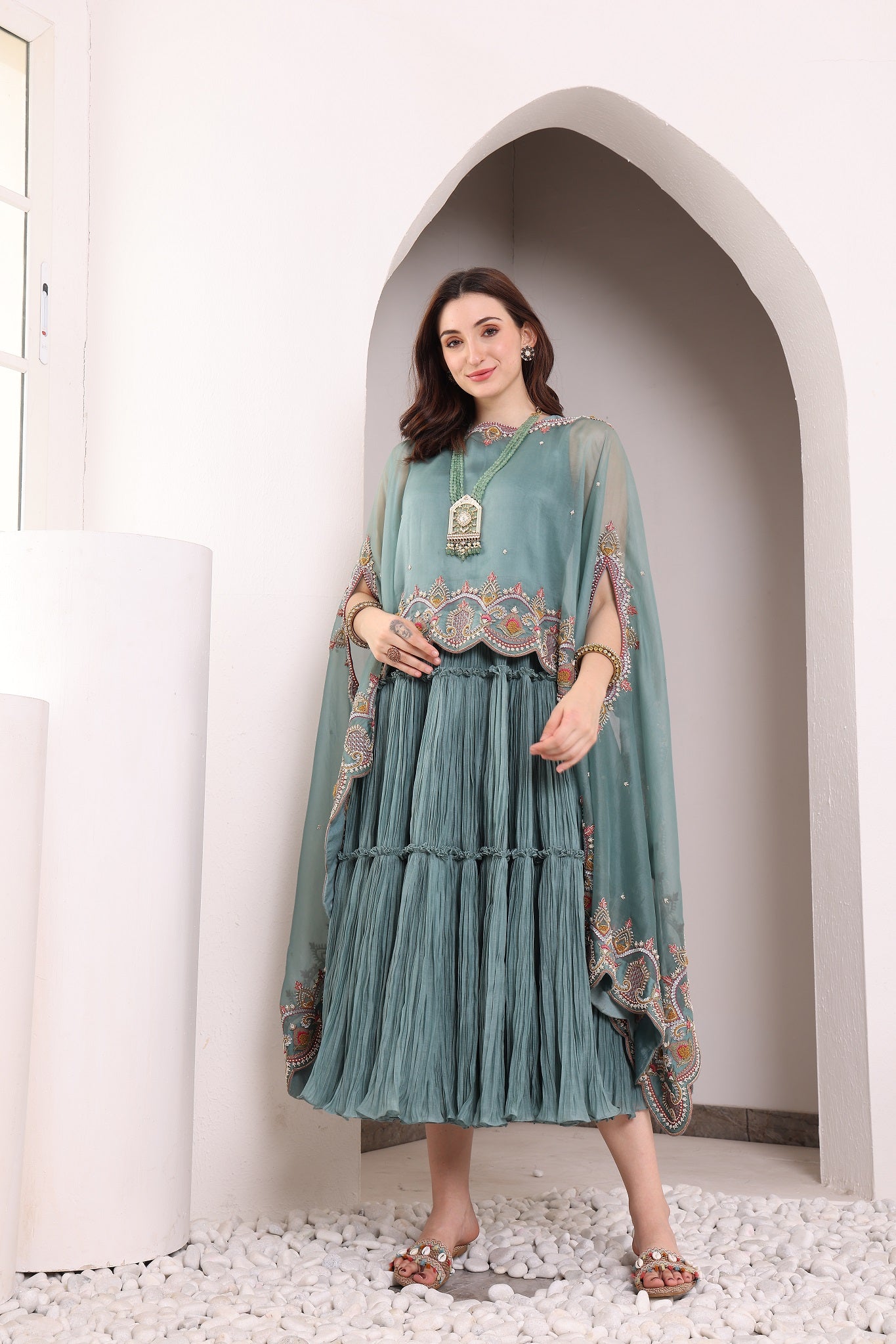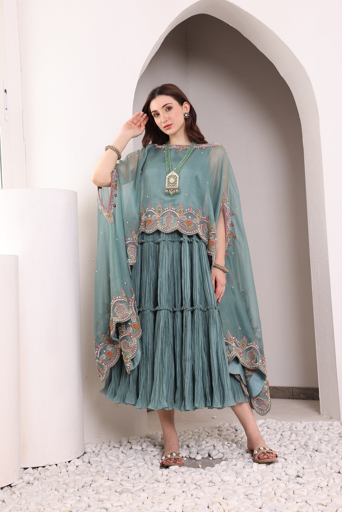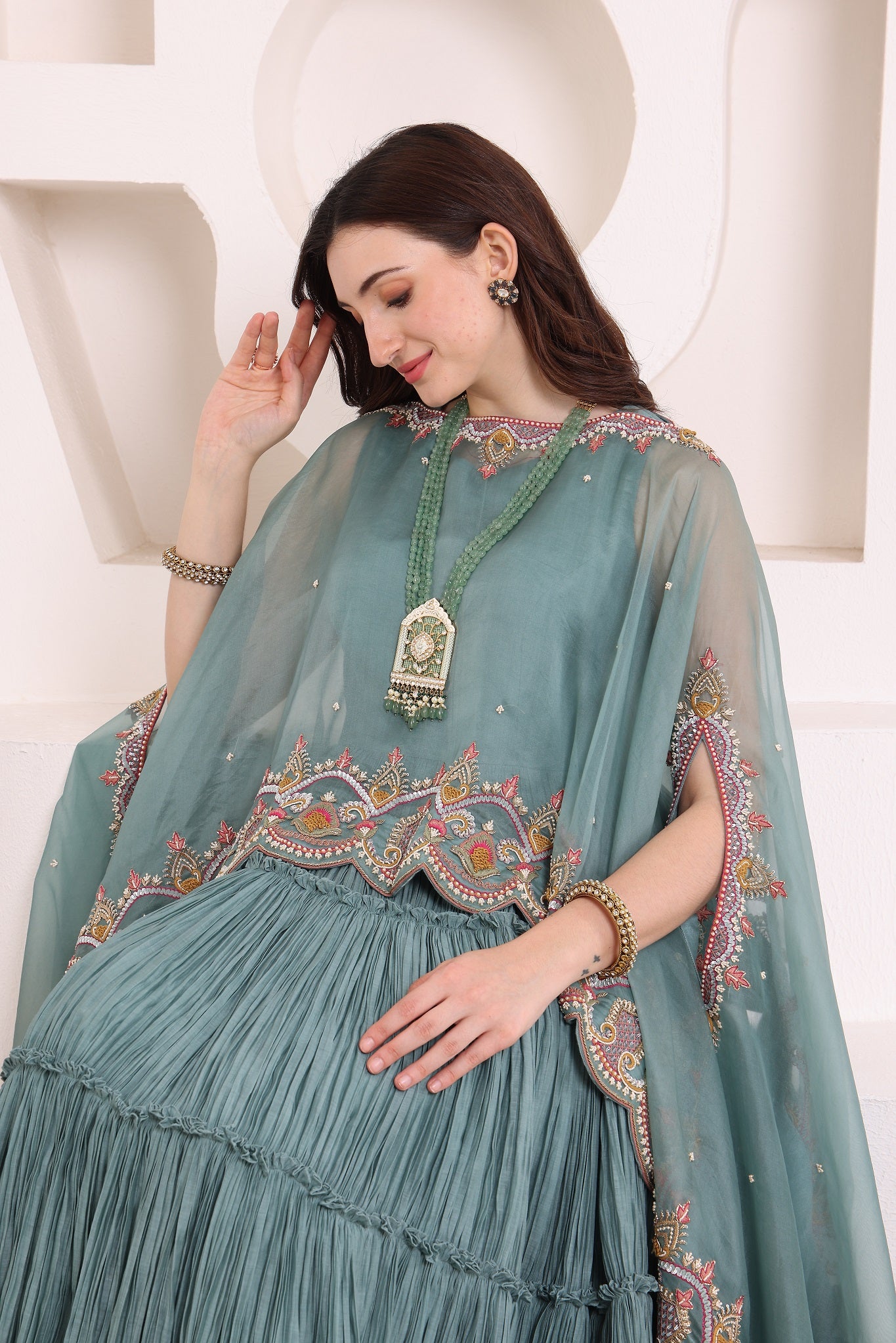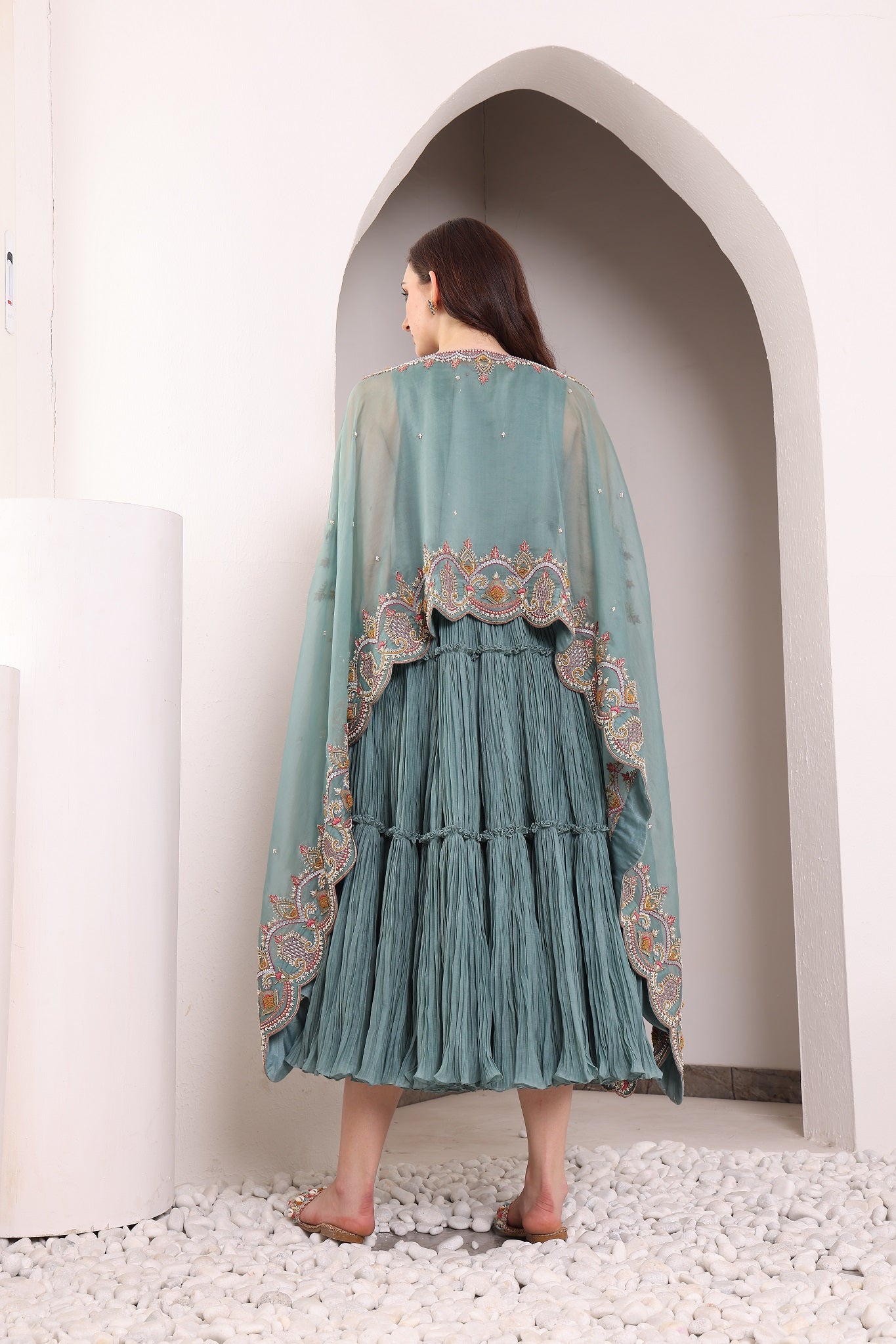 • EMBROIDERY: ANTIQUE DABKA, ANCHOR, PEARLS, SEQUINS WITH ZARDOZI