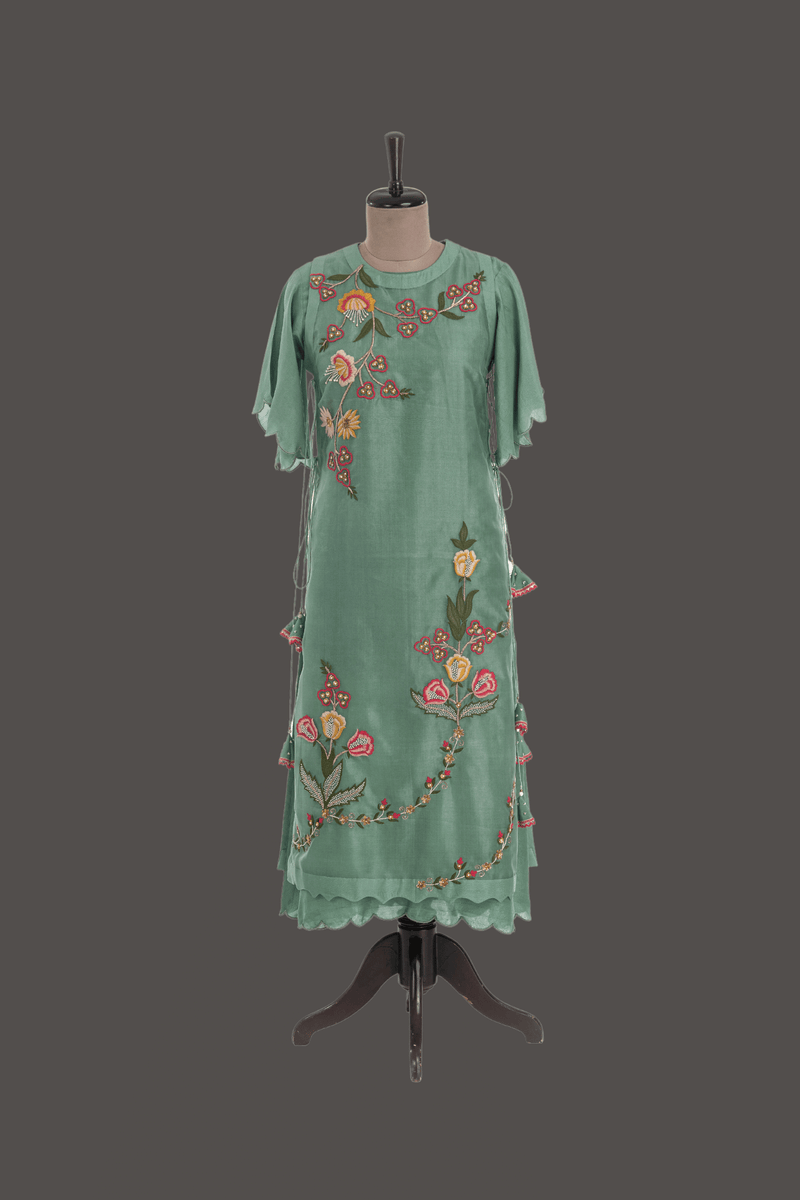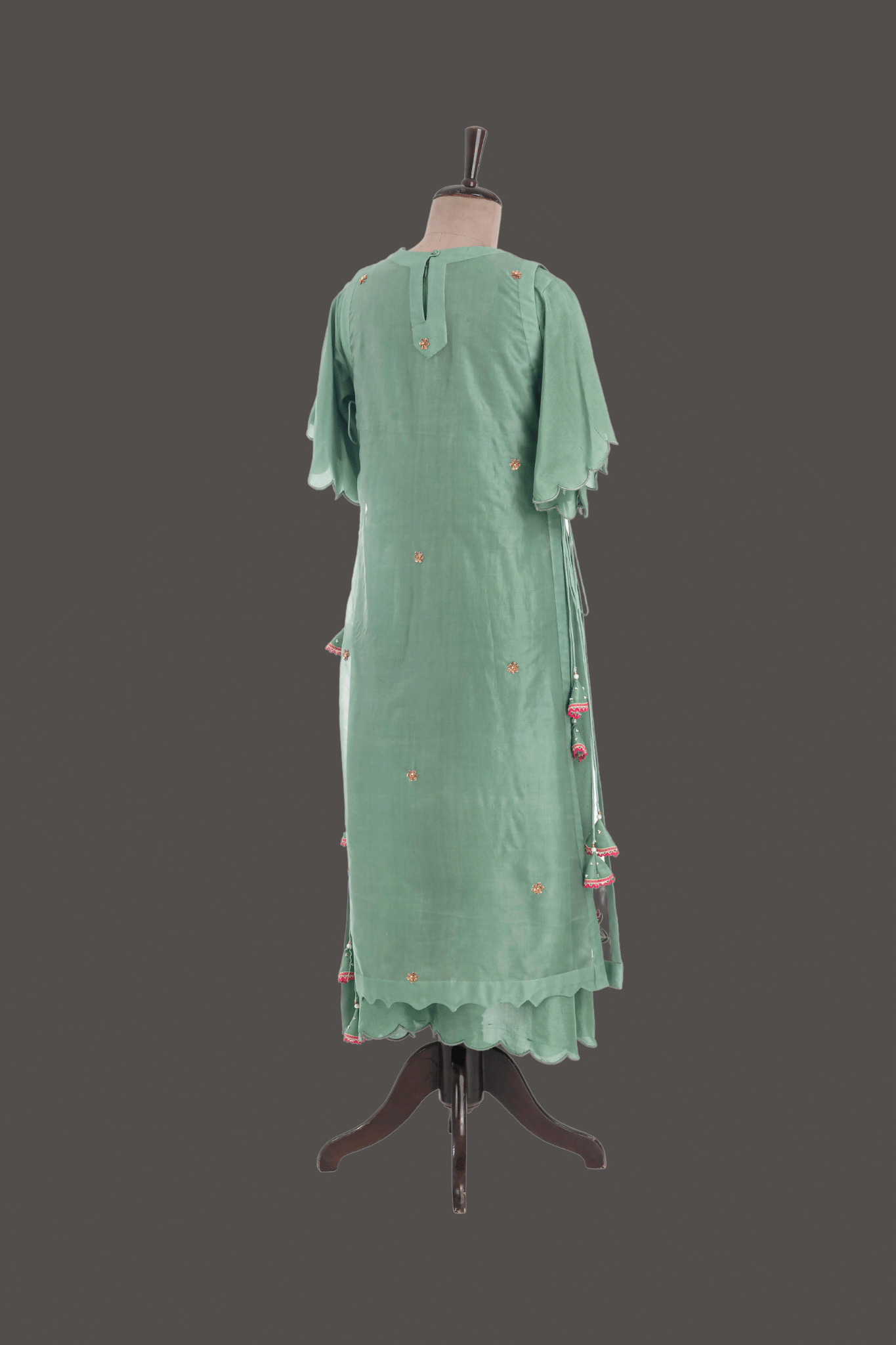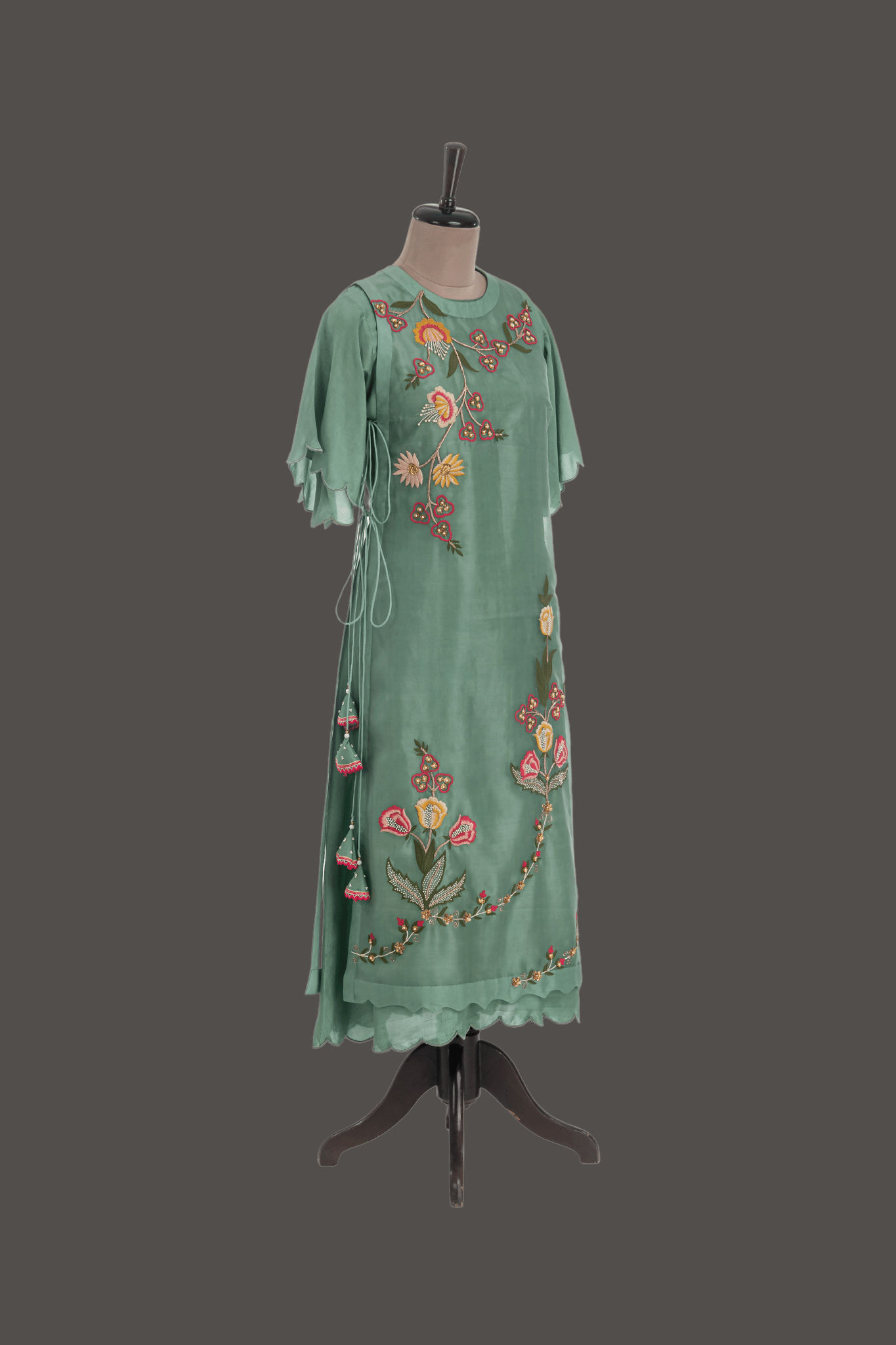 ⦁ Fabric: Dupion Silk Inner & Organza Cape.