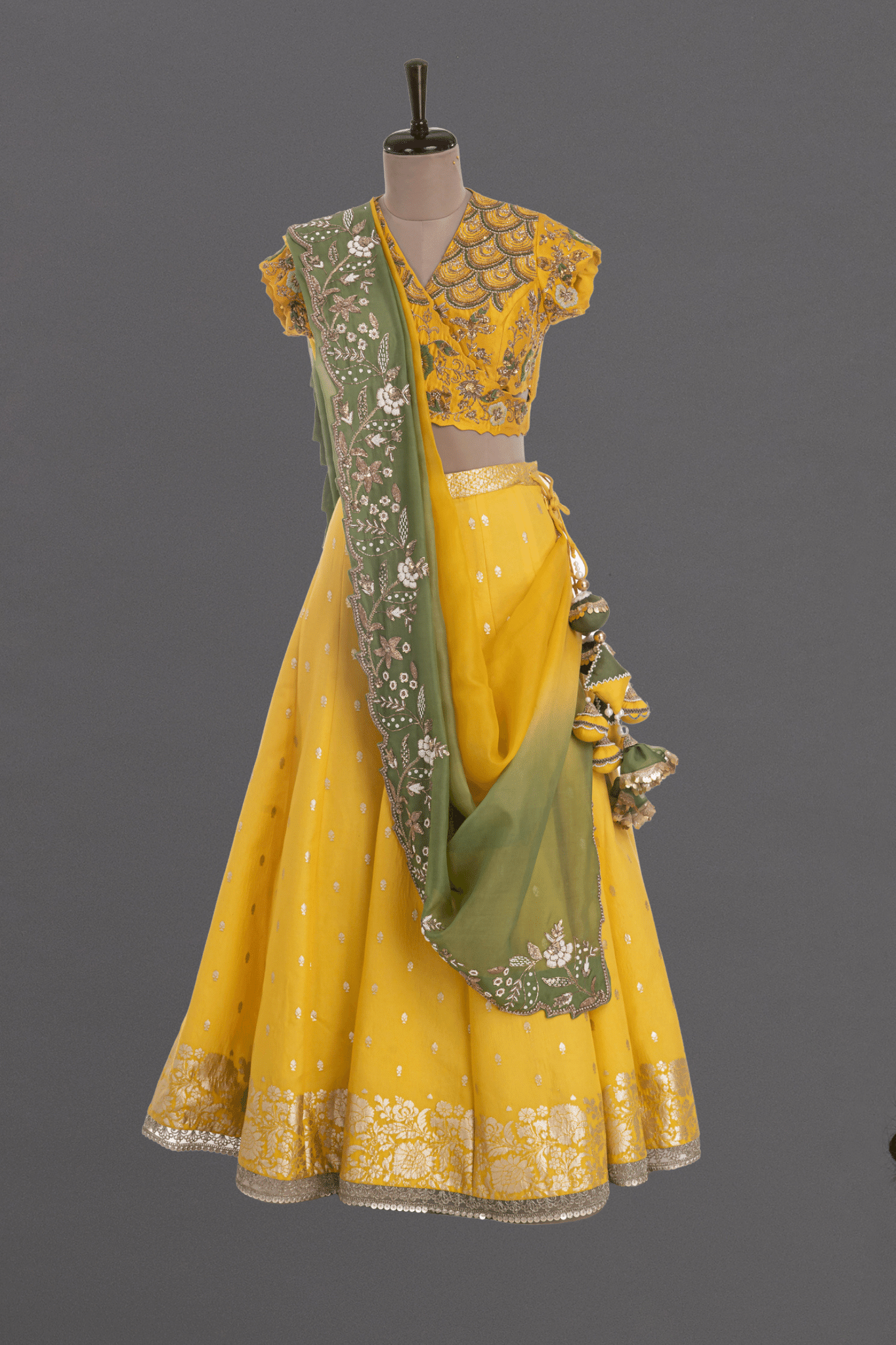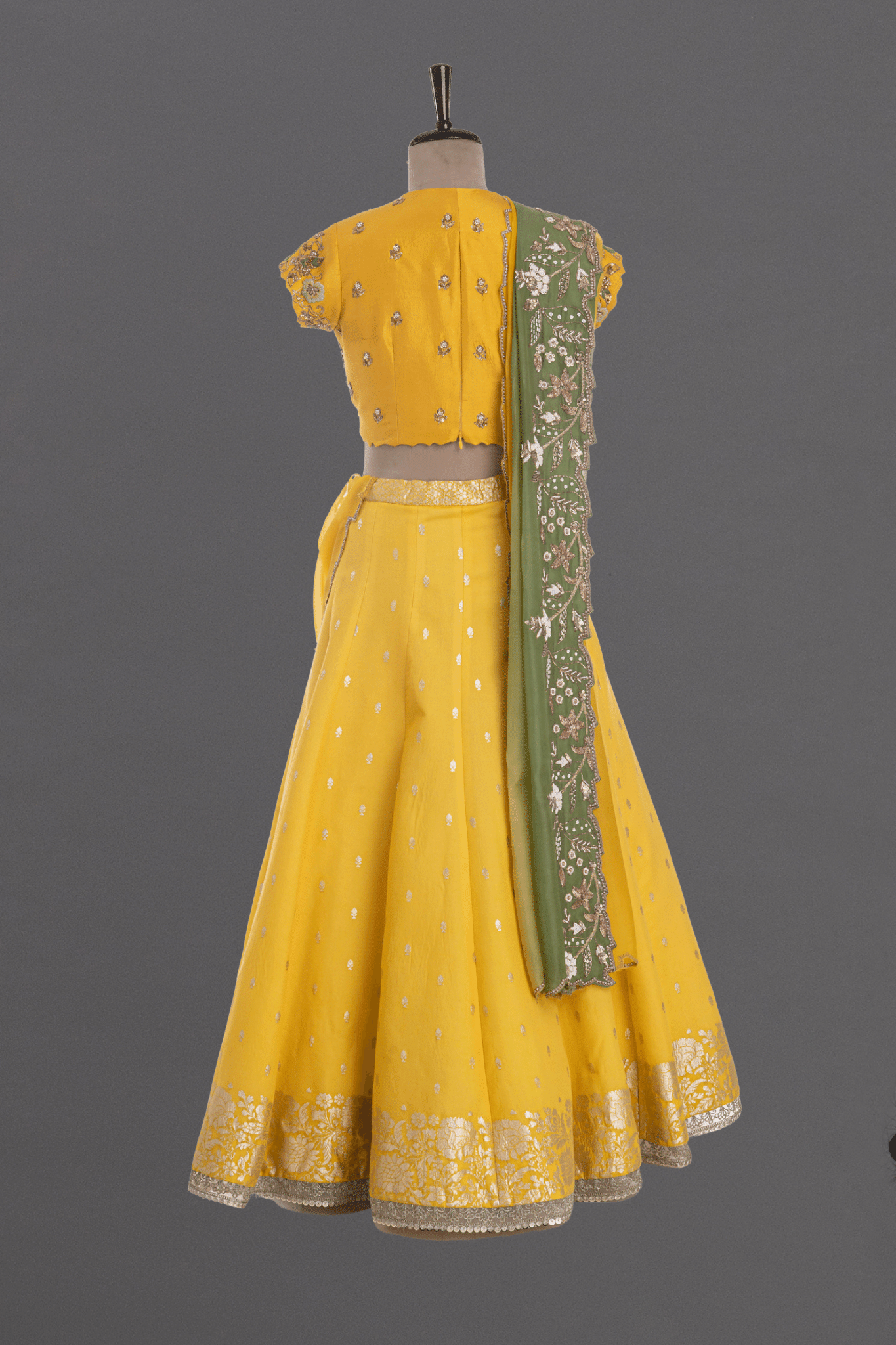 ⦁ Fabric : Dupion silk blouse, banarsi chanderi silk skirt & organza duptta.