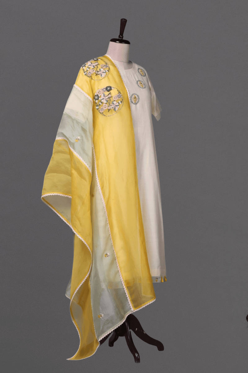 ⦁ Fabric: Chanderi silk kurta with cotton lycra pant & organza duptta.