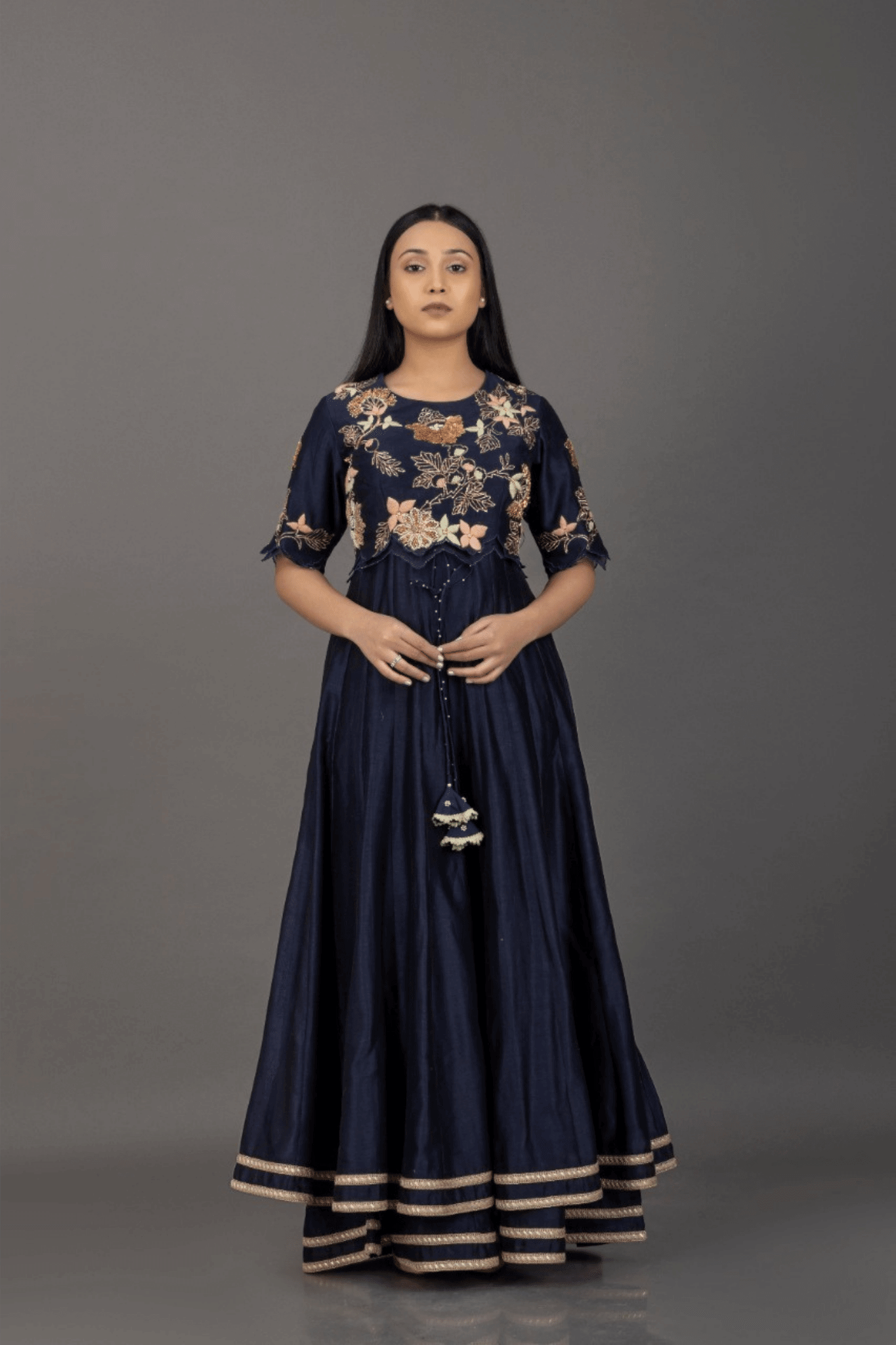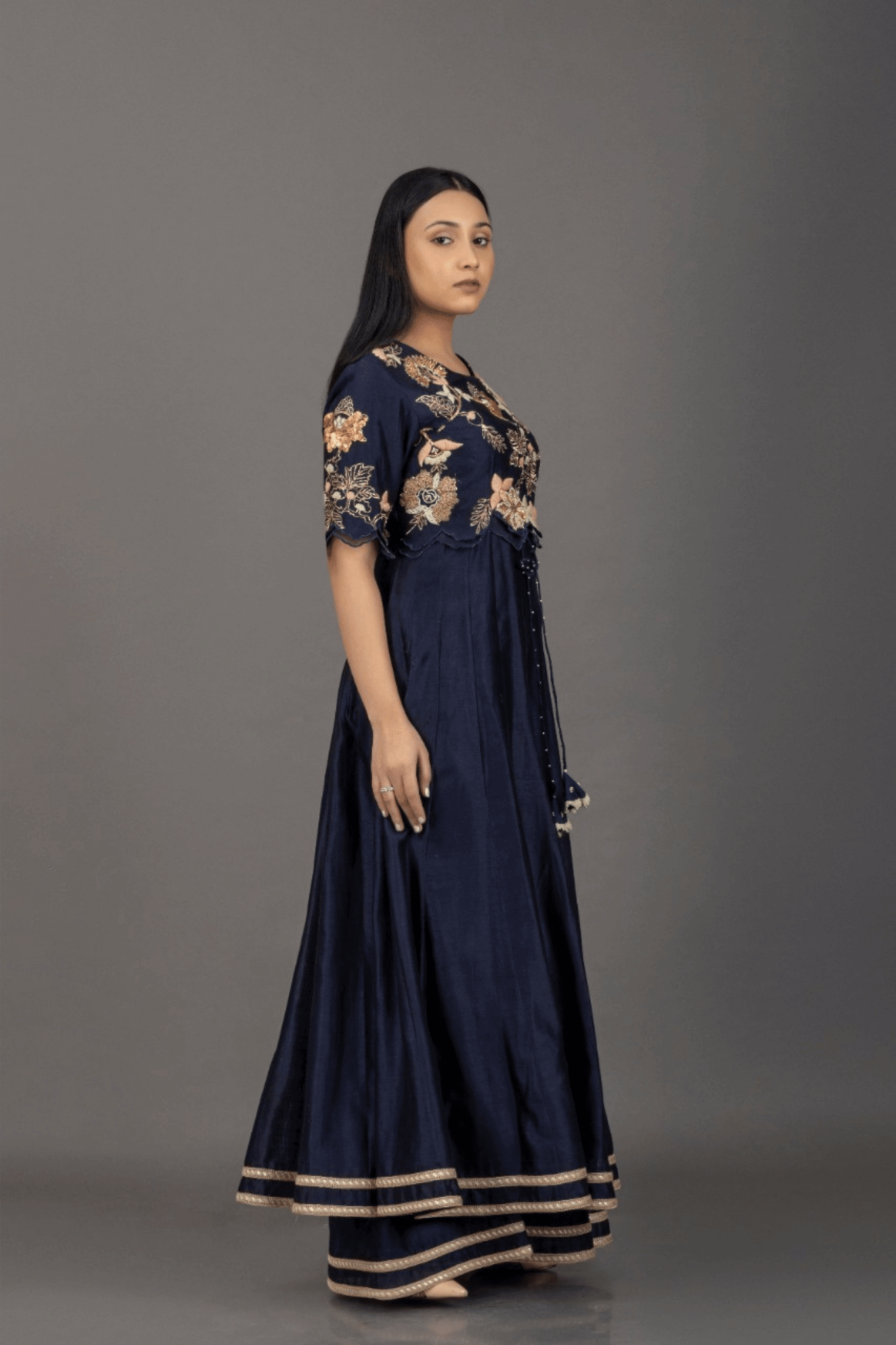 ⦁ Embroidery: Zardosi with antique dabka, anchor pearls & sequins