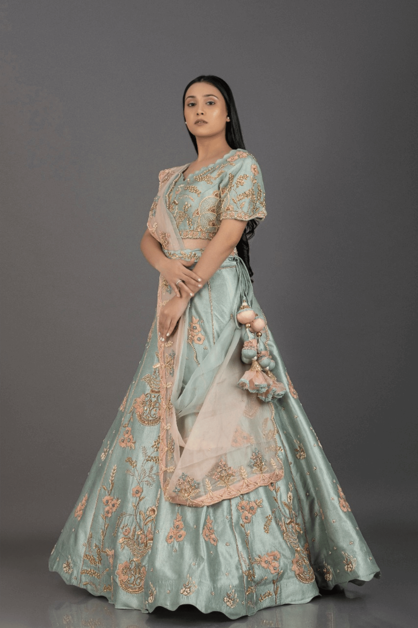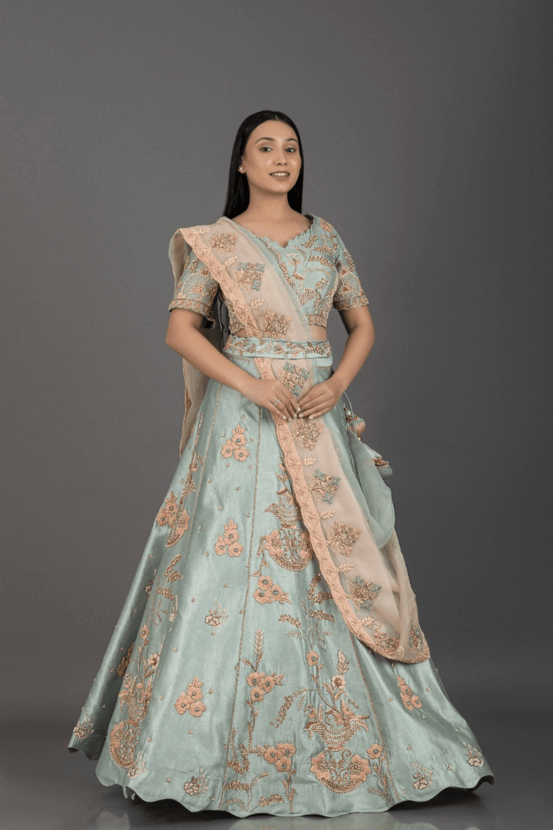 ⦁ Fabric : Row silk lehanga , blouse & organza duppta